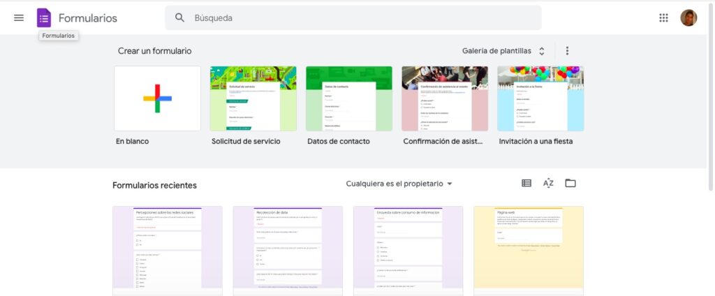 - Cuenta de Google: Necesitas tener una cuenta de Google. Una vez que tenga una, puede ir a forms.google.com para crear un nuevo formulario.